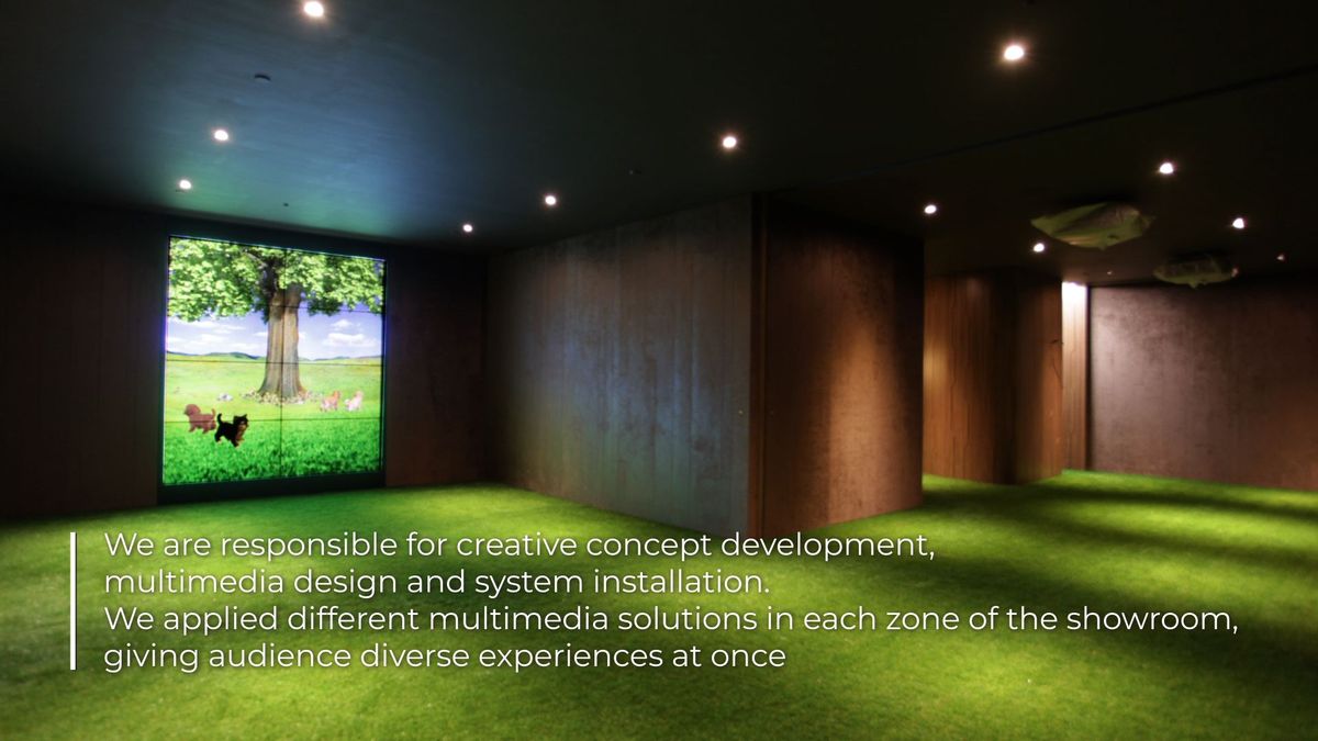 We are responsible for creative concept development, multimedia design and system installation. We applied different multimedia solutions in each zone of the showroom, giving audience diverse experiences at once.